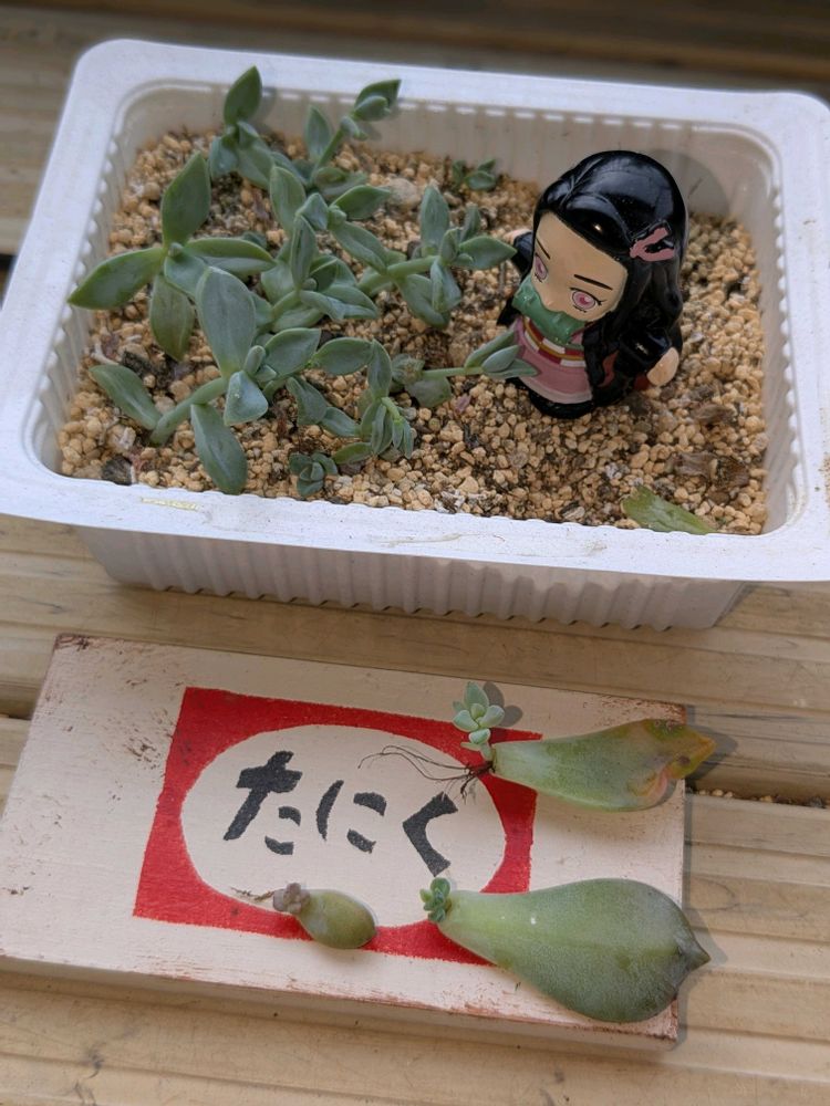 ②豆腐トレーの中はゴースティの葉挿し❣️夏にも耐えてくれた✨👏👏👏✨