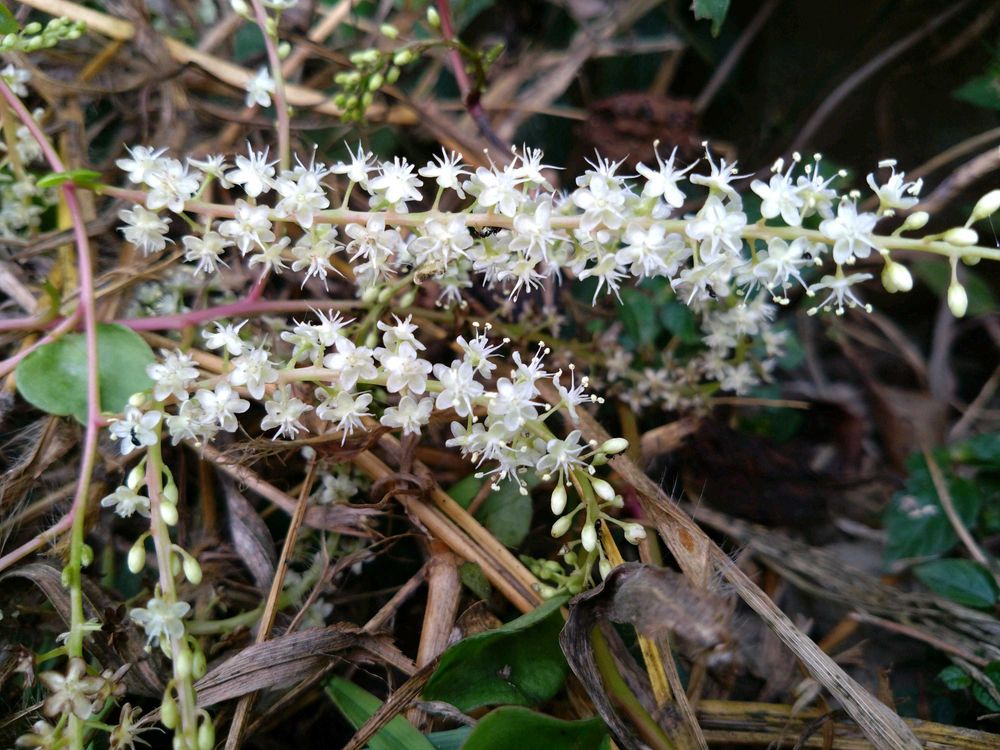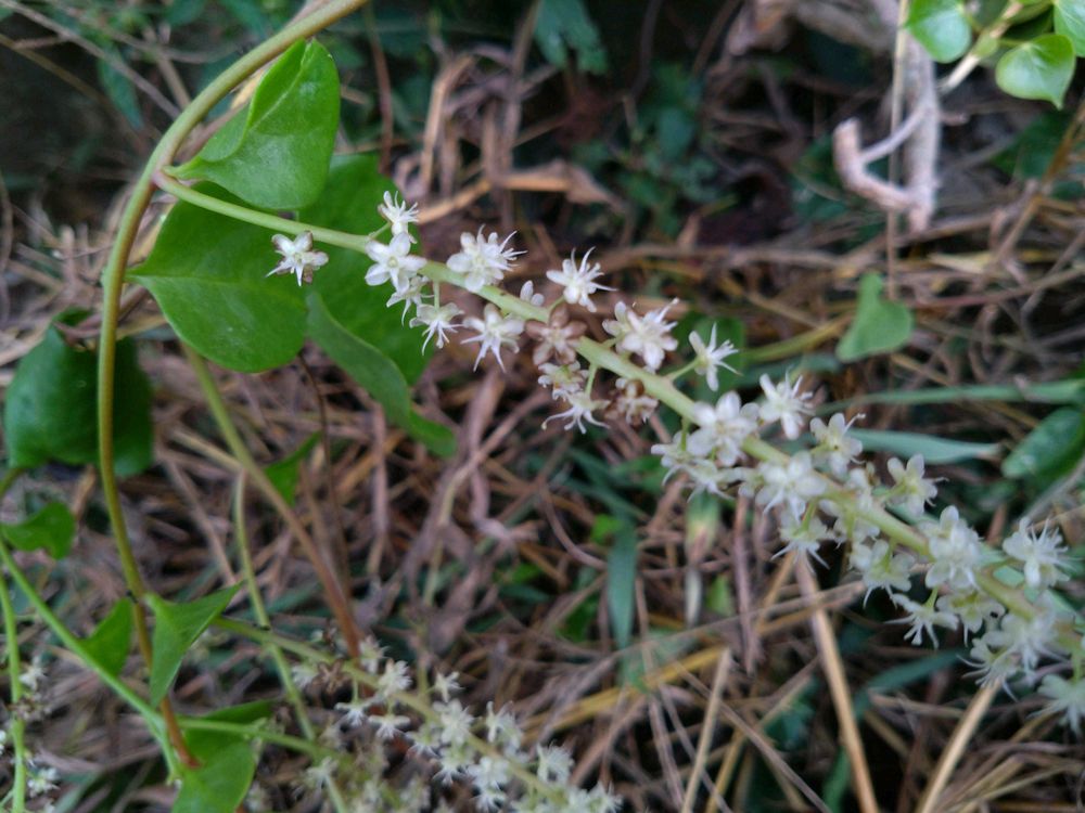 オカワカメ 別名アカザカズラ(ツルムラサキ科)可憐に咲いていました⭐️