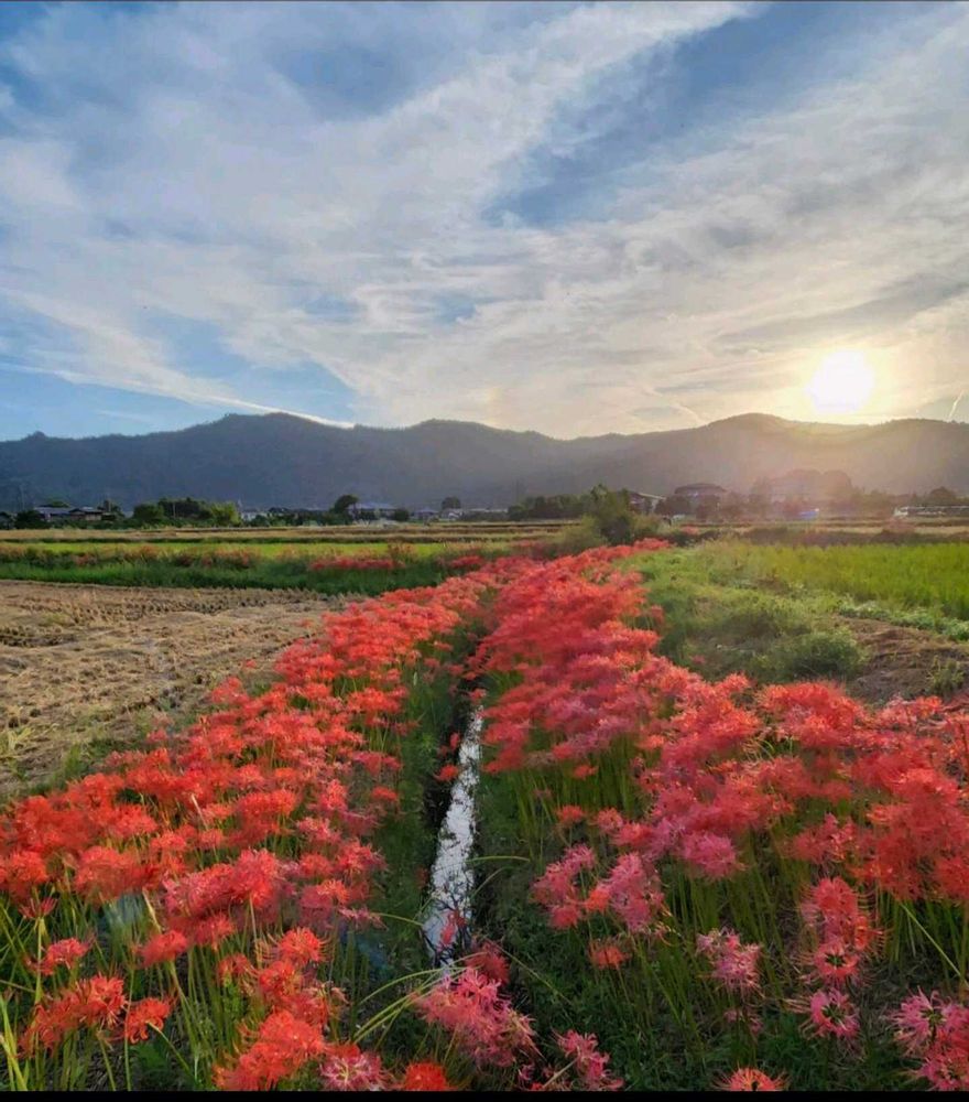 ヒガンバナ,彼岸花と夕焼け,花のある暮らしの投稿画像