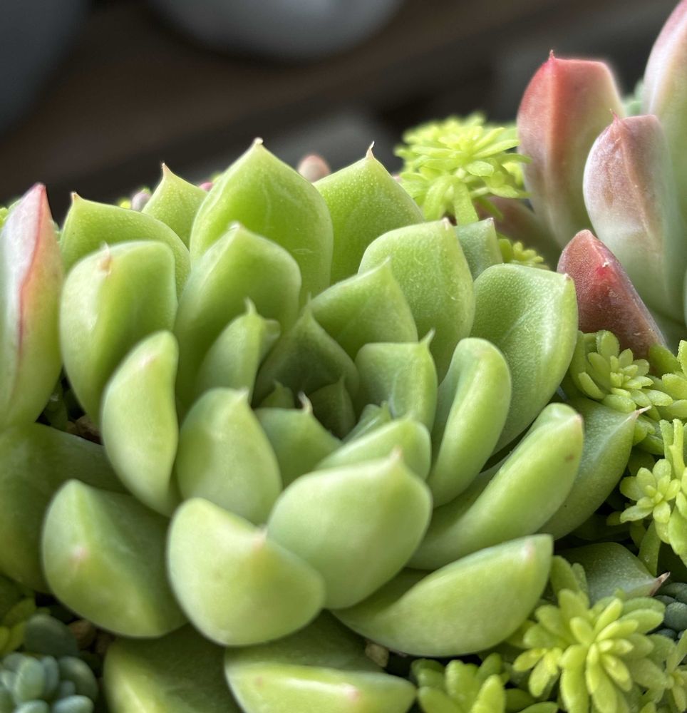 可愛い鉢とアサヒガーデンさんのエケベリア、少しのセダムをお迎えして、寄せ植え2つ目(˘︶˘).。.:*♡