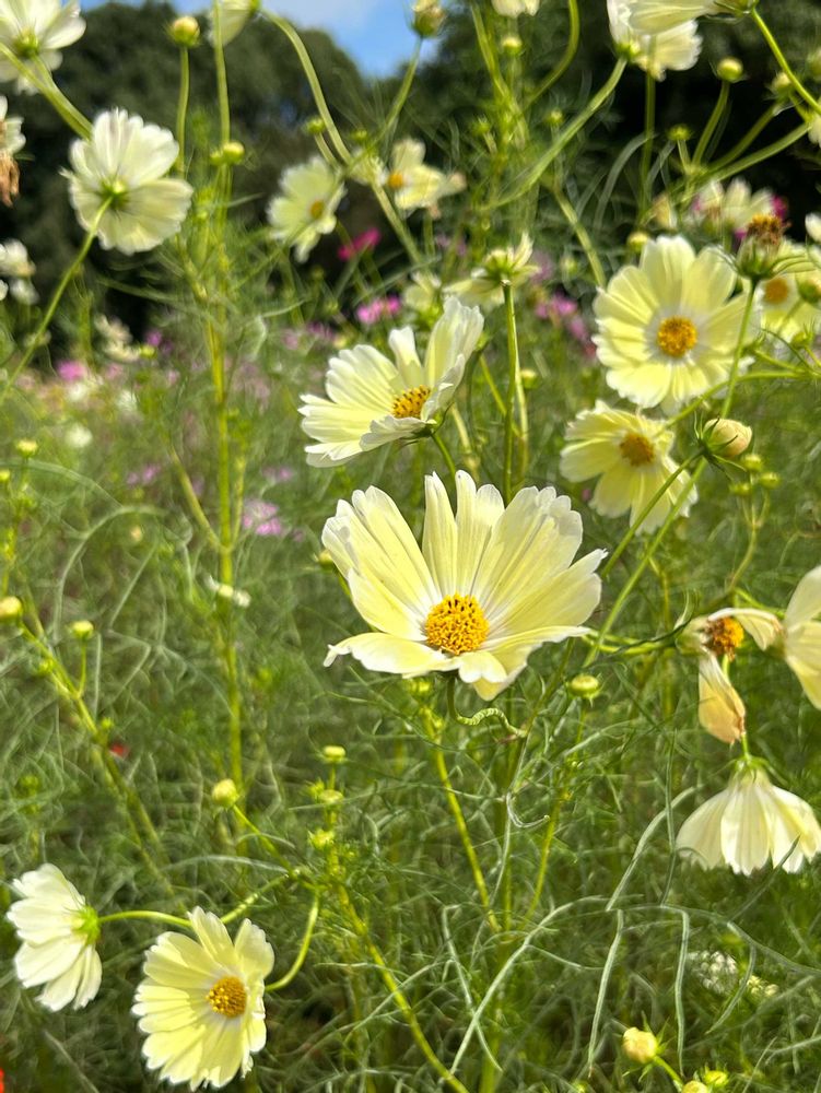 玉川大学農学部が開発したコスモスでキバナコスモスとは違う種類と、花友さんから教えてもらいました😊