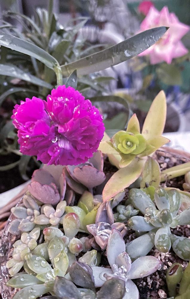パープルピンクのダイアンサス💜と多肉さんの寄せ植えコラボ素敵ですね~😍