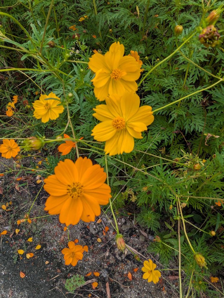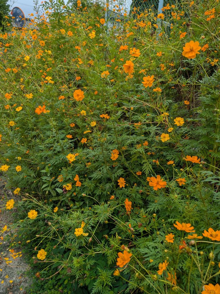 中学校にキバナコスモスがたくさん咲いてました🥰