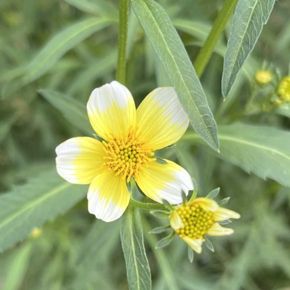 ウインターコスモス咲きました🌼🌿白い花びらに中心から広がっているレモンイエローが可愛いですね💕剪定していたのにモリモリに大きくなって沢山咲いてくれそうです🥰🍀
