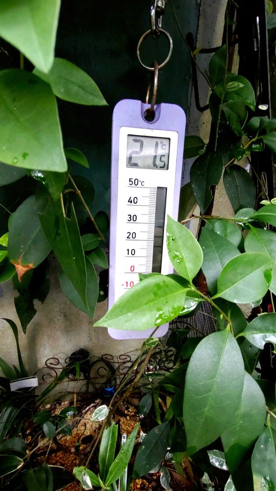 気温21.5℃です、昨夜の☔で湿度が高いです😵