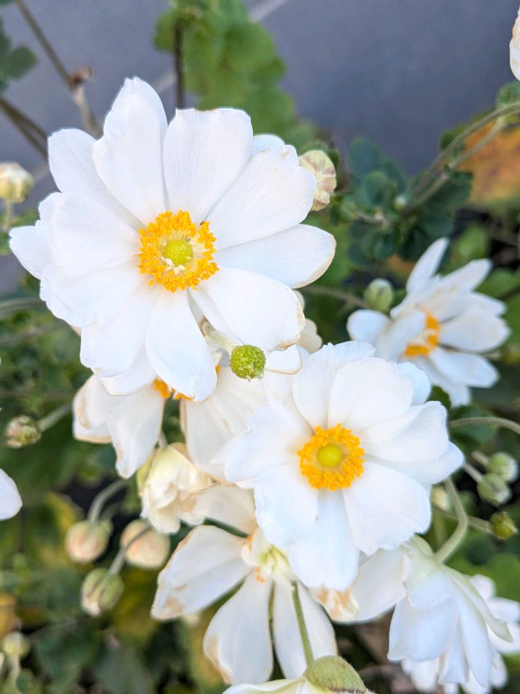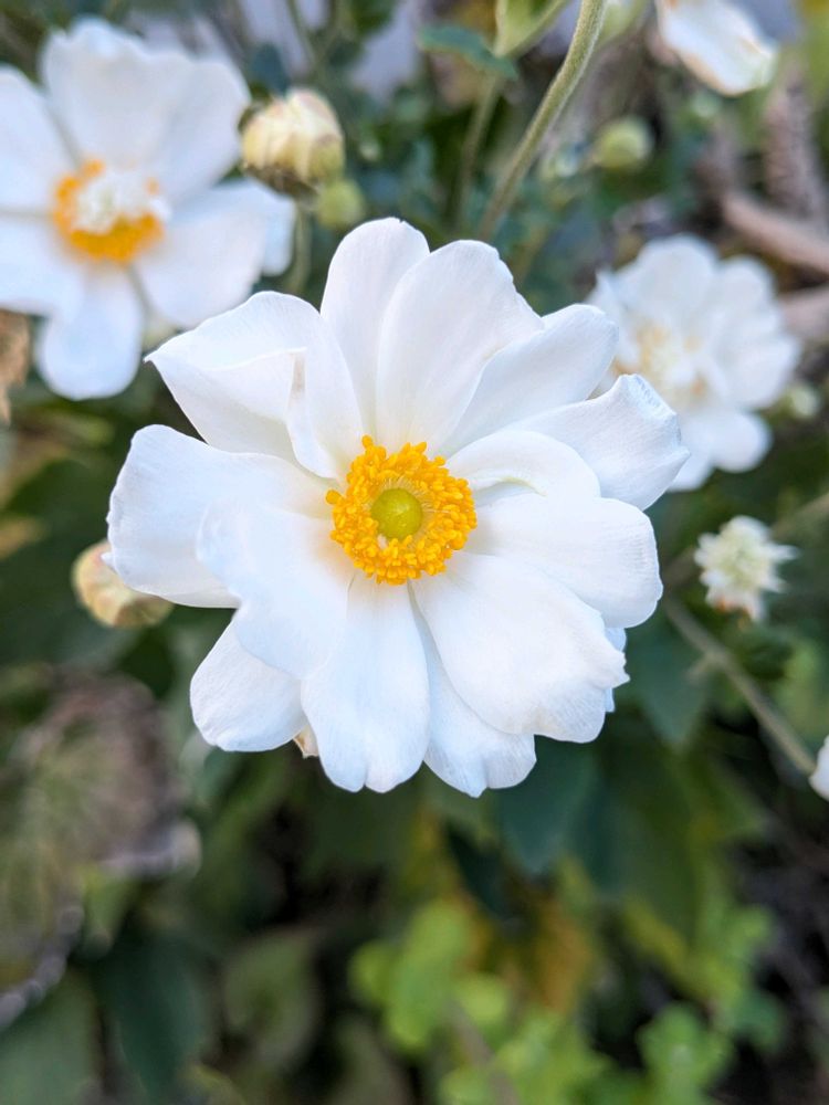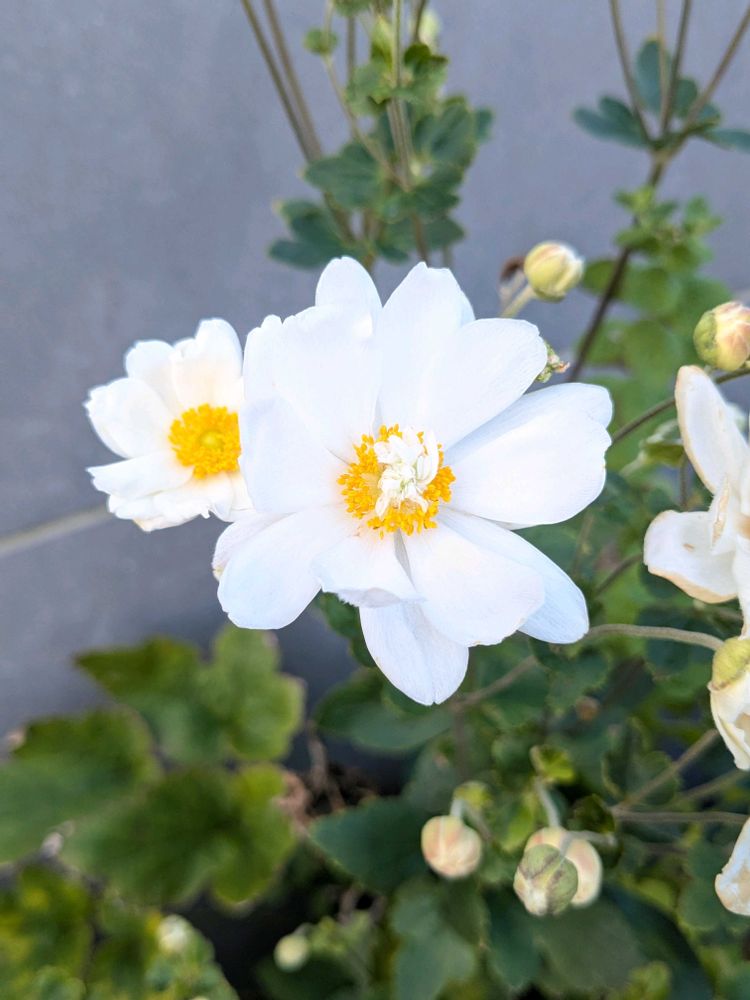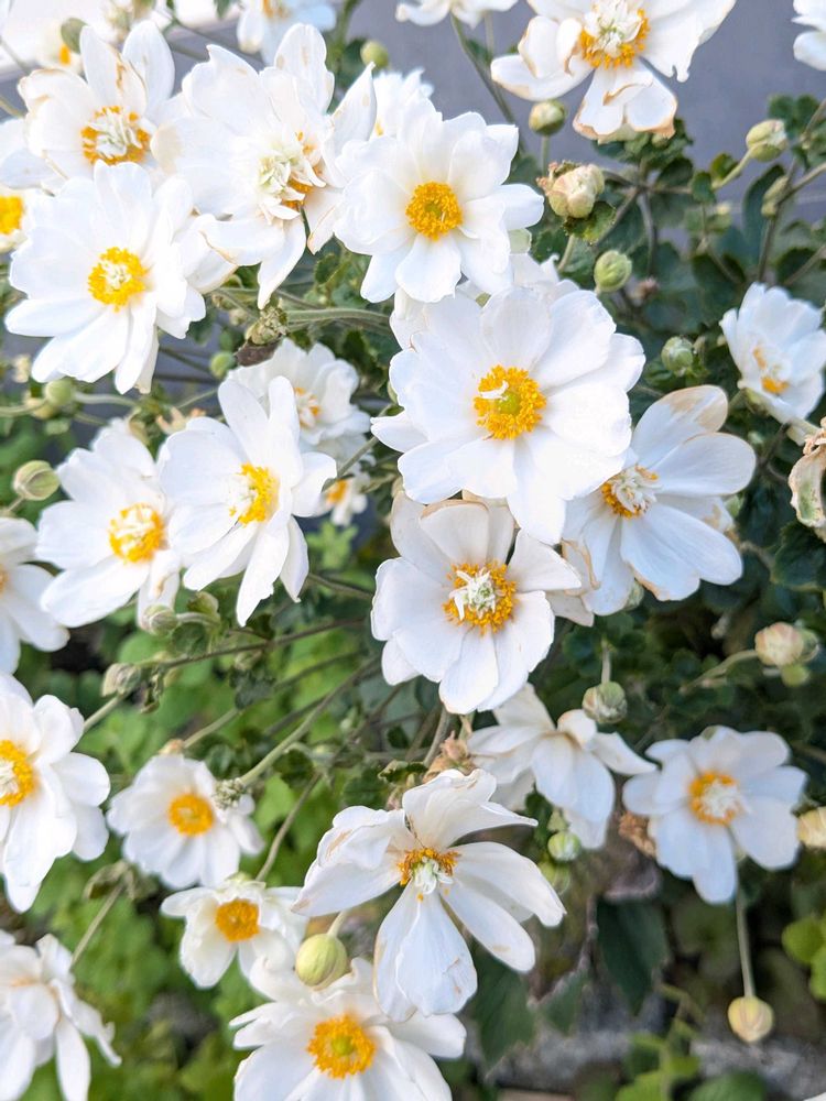 晴れたので外へ出ると、雨で水分補給を済ませた白い秋明菊が綺麗に咲いていましたよ〜