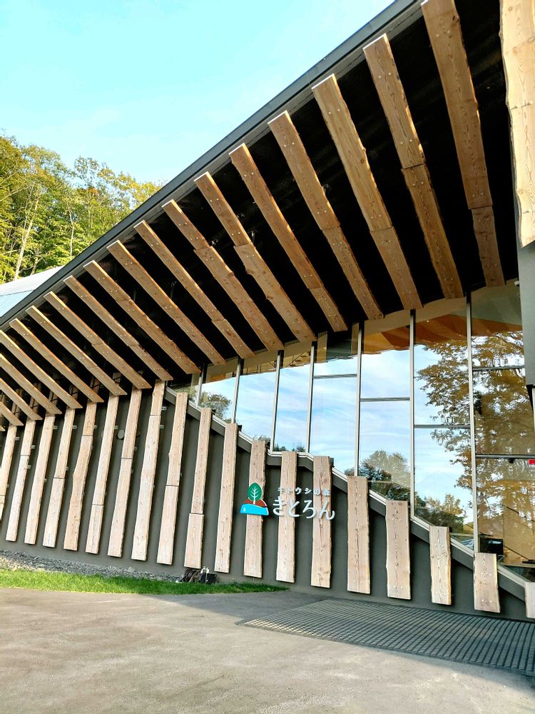 山々の尾根をイメージされたカラ松で覆われた外壁は圧巻。