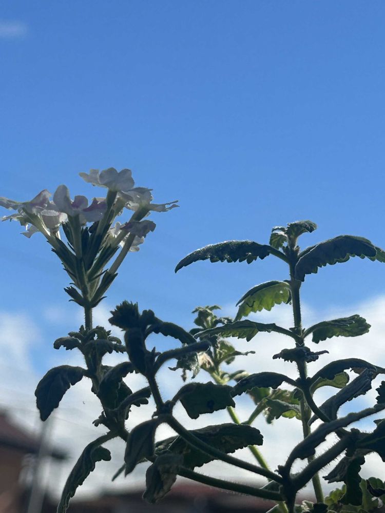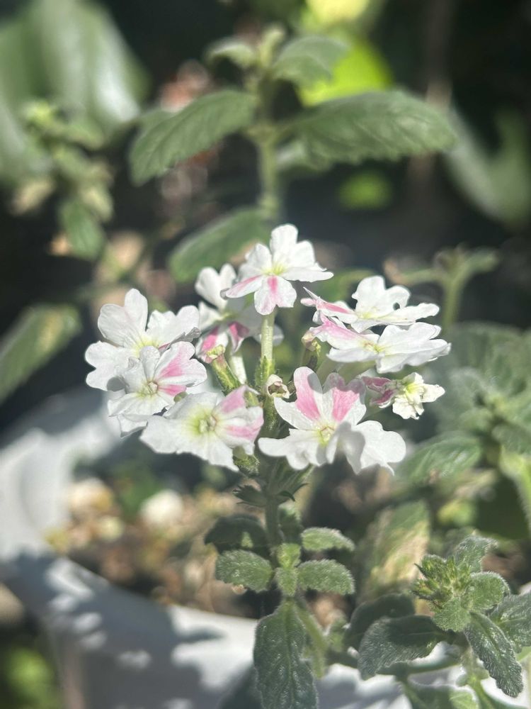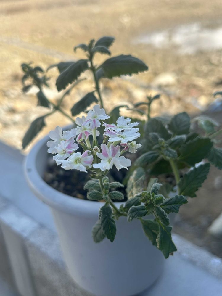花友さんから頂いた「バーベナ🤍🩷」さん、白にピンクの模様が入っ