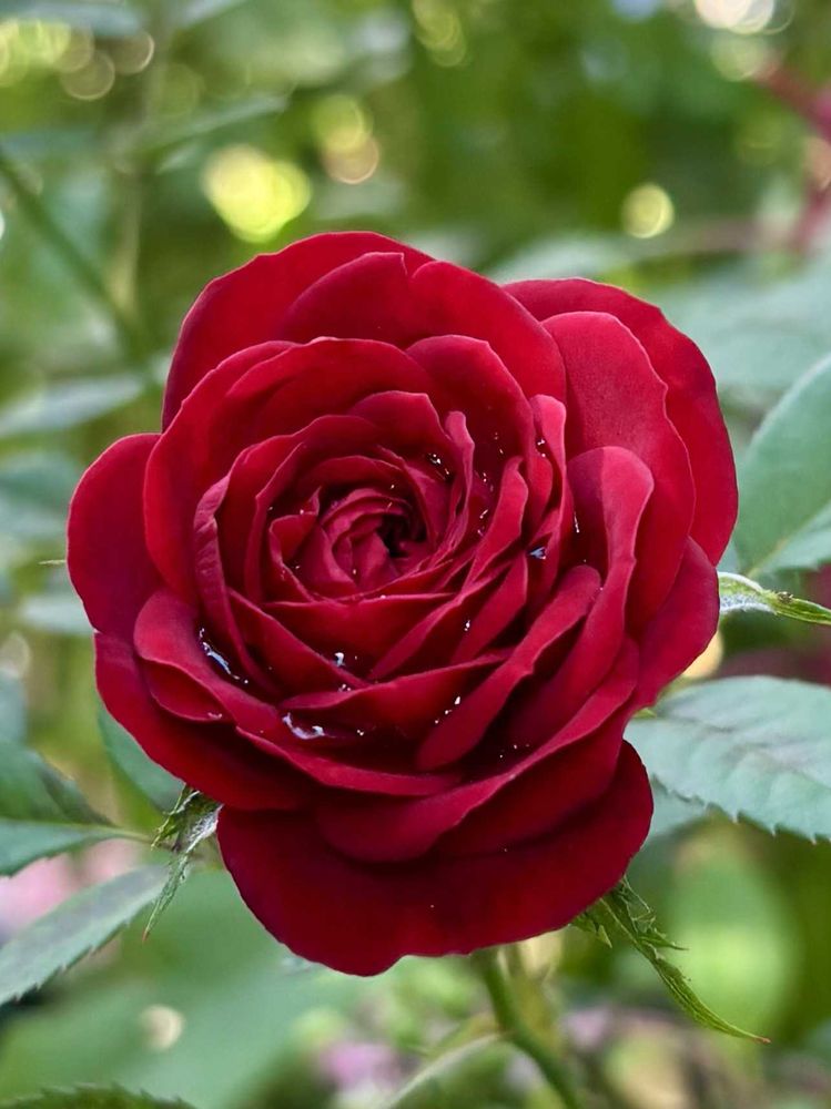 ④赤いミニ薔薇🌹雨露キラリ❣️