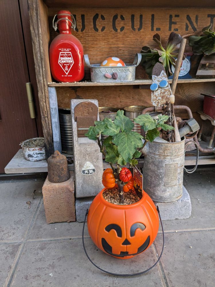 ソラナムエチオピクスを見た時に😍一目惚れしてしまって😉この子を植える鉢🤔何がいいかと悩んだ末、100均に行ったらちょうどいい🎃を見つけ植えました😁👍