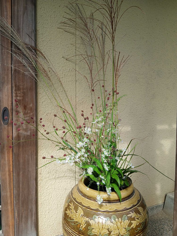 ➂ススキの穂が飛び散らないよう最後は刈って玄関に飾ります。