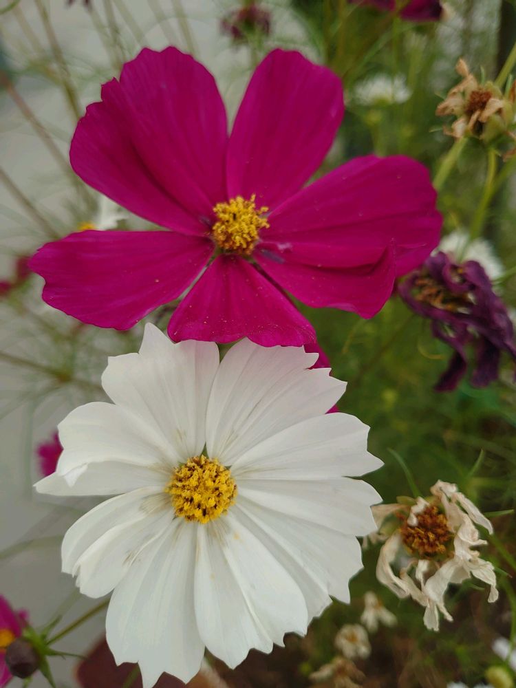 かわいい🩷紅白のコスモスさんもいいね👍コスモスってほんと背が高くなるよね〜😵🎶ゆらゆら揺れてかわいい🤭