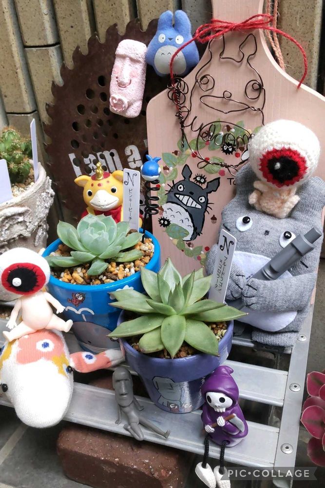 1枚目は、えつこさんのくじらとモアイのリメ鉢に入っている多肉たち💕