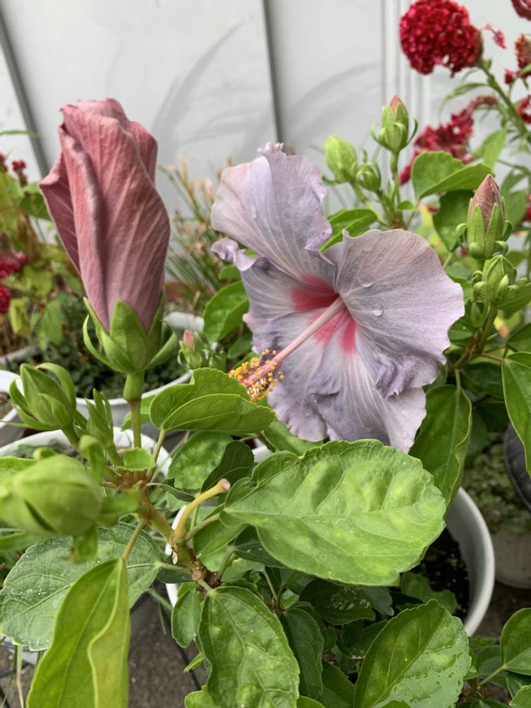 (1つの鉢に2種類のハイビスカス)