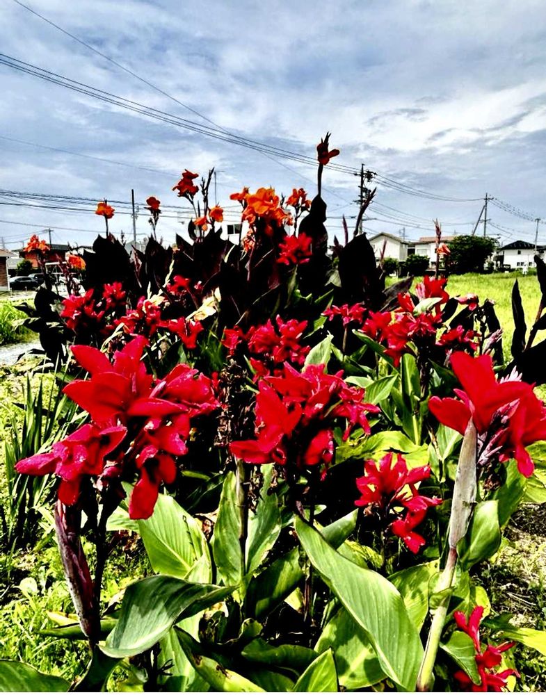 1️⃣2️⃣3️⃣南の花壇で、情熱的な赤が夏らしいです