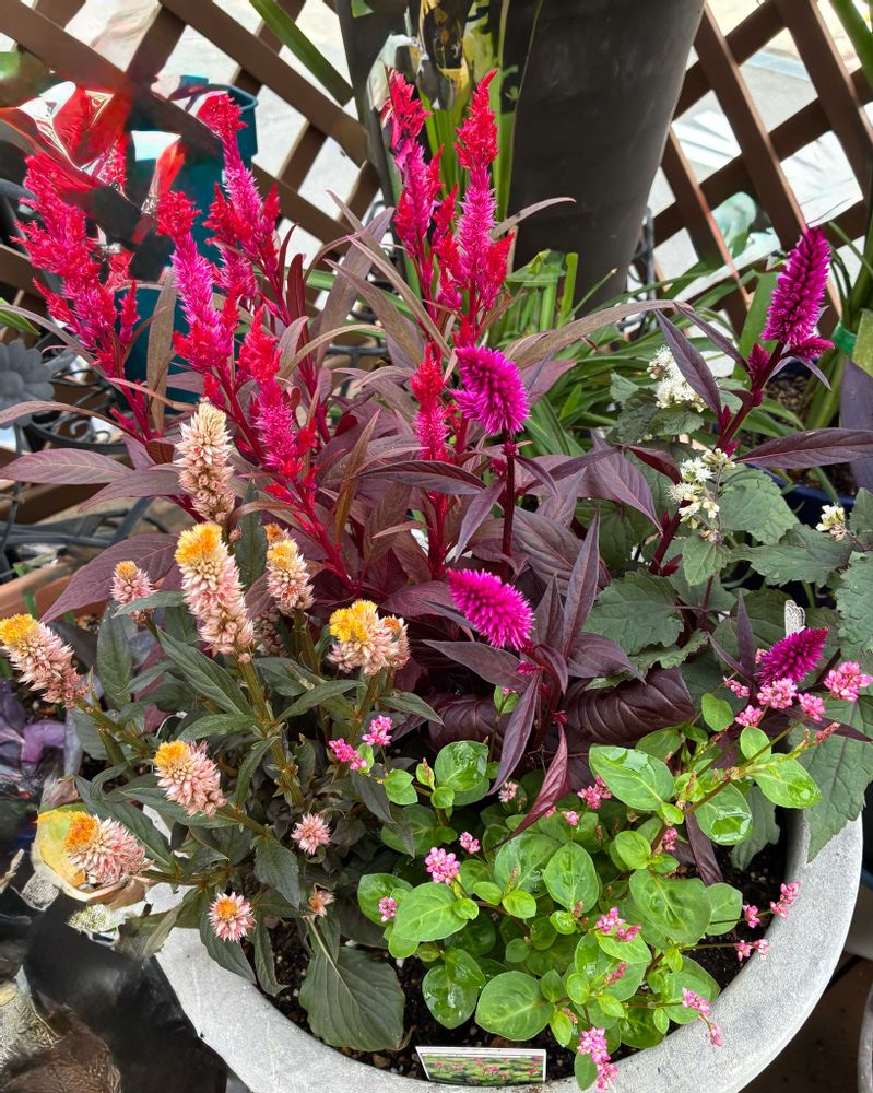 やっぱりセロシアの色もオシャレで素敵な寄せ植えが出来ましたねー。羨ましいわー
