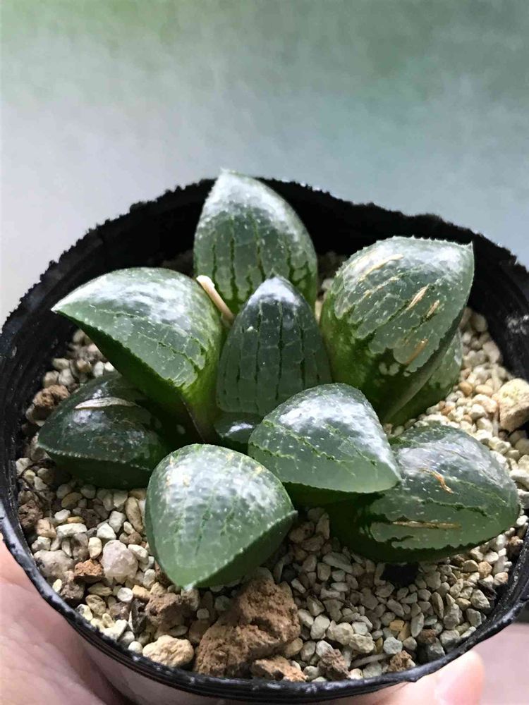 スッチーと名札がついていたハオルチア。かわいくて購入したものの、ネットで検索しても出てこず、、、。何かの交配なのかな🤔