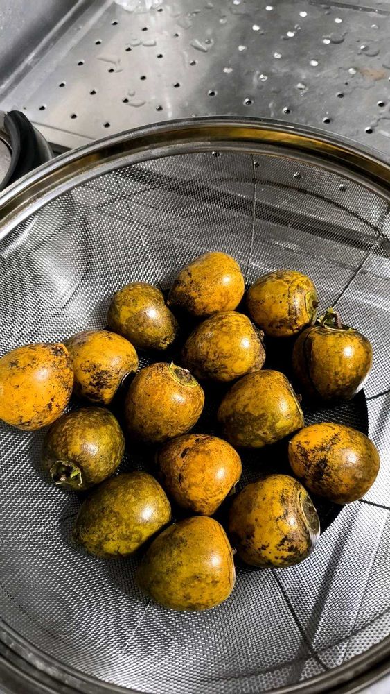 黒柿を収穫し、切って冷凍して、渋を抜きます