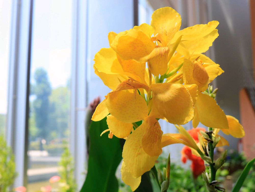 この館内で咲いているカンナは今月も咲いていて、長い期間、繰り返し咲いているみたいです👍🎶