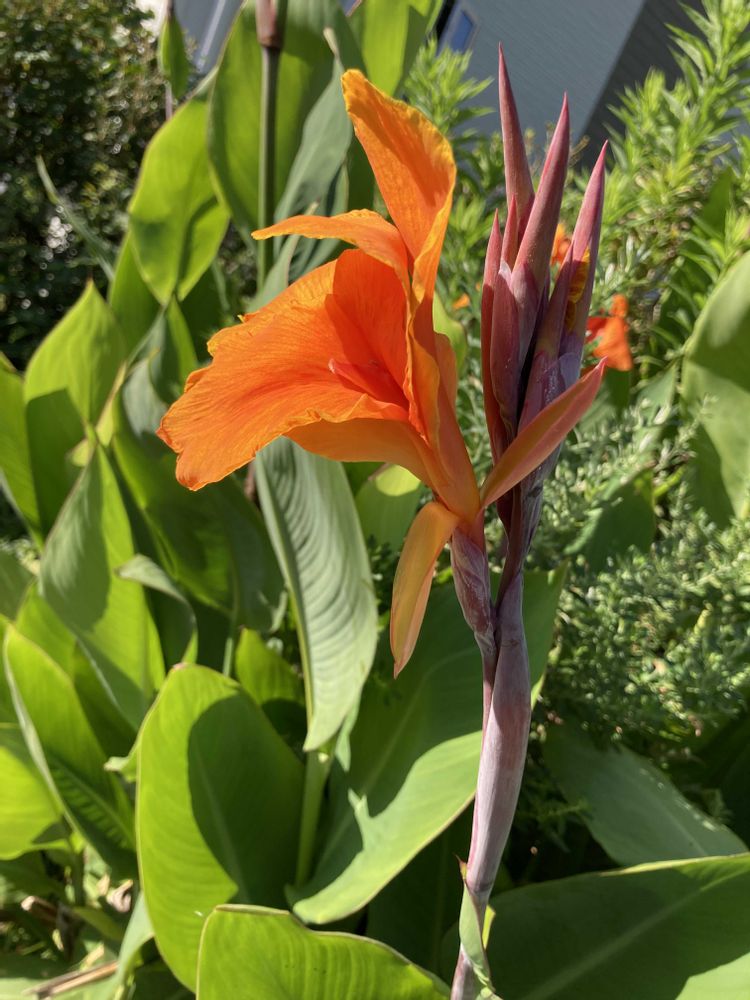 川沿い遊歩道に毎年咲いてくるオレンジのカンナ