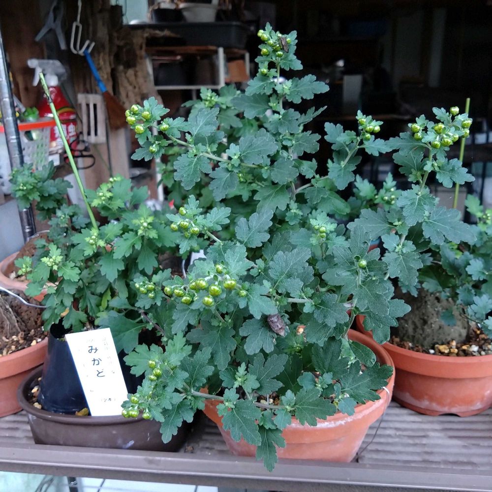②③盆栽作りの小菊に蕾(•ө•)💚
