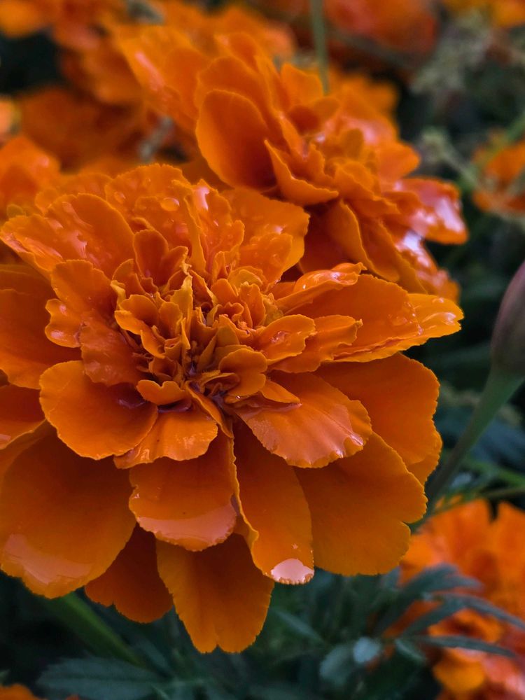 オレンジ色のマリーゴールドに雨の雫が付きキラキラ✨して綺麗✨ですね。ビタミンカラーで元気をもらえますね🤗