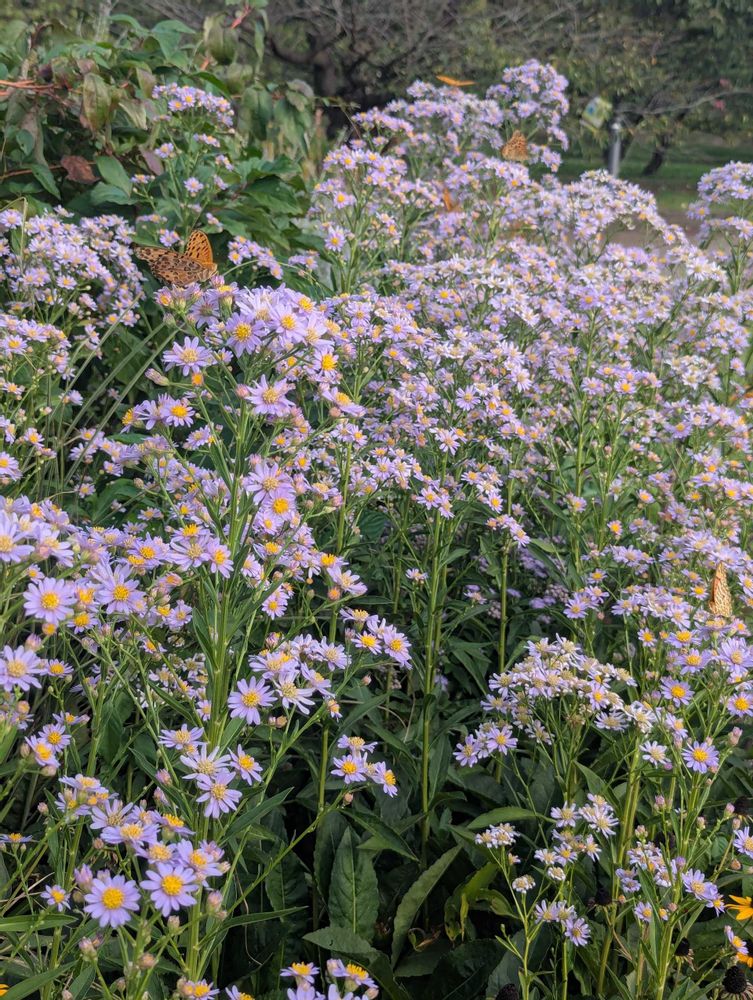 シオンの蜜は美味しいようで、びっくりするくらいのツマグロヒョウモンが飛び交っていました😋