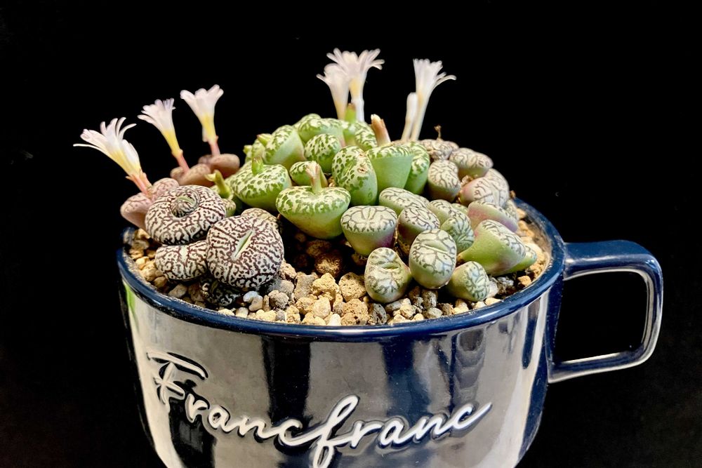 Francfrancのスープカップに🌵展示会初日に名人実生のリトちゃんを7鉢購入U^ェ^U