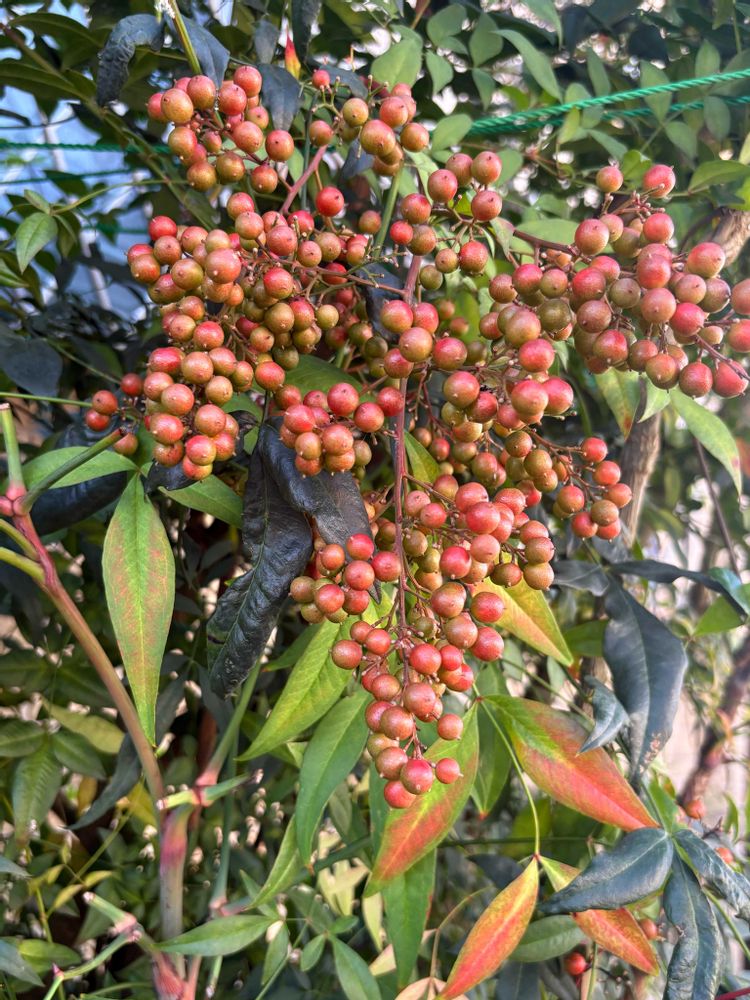 1️⃣2️⃣玄関横のナンテンの実と3️⃣千両の実🍁薄らと秋色に変わって来てます🍁