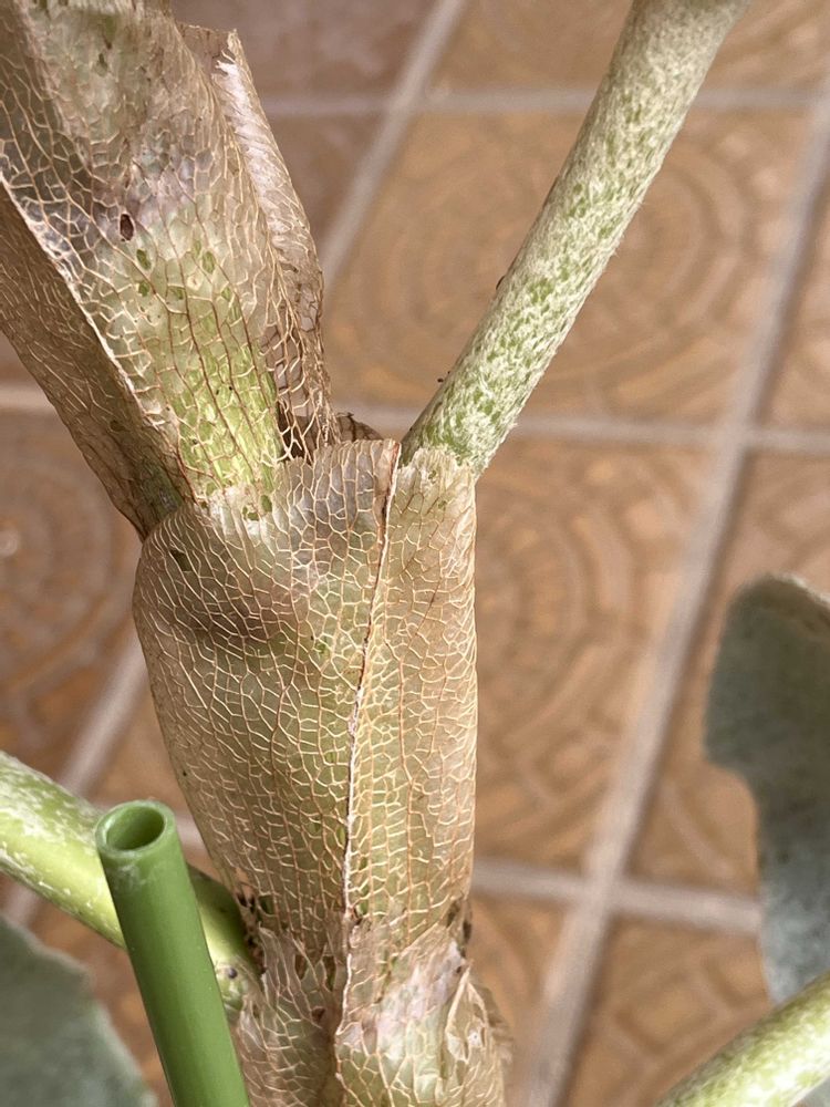 肉厚で一面産毛大きな葉