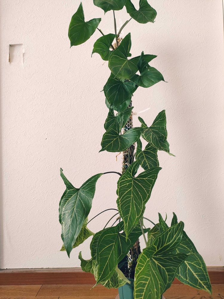 ちなみに気根が暴れん坊すぎて(2枚め)ポールにあげた水が気根を伝ってポタポタ垂れ、水遣り時は周囲が水浸しです😅