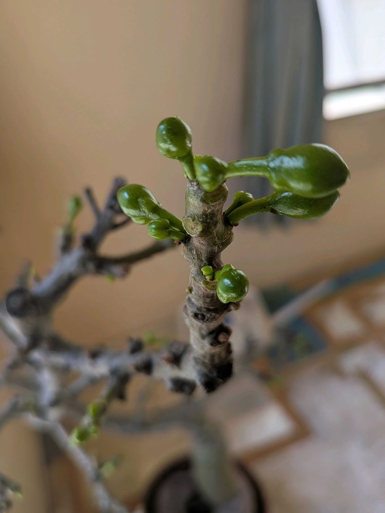 沖縄から頼み5年目になるトックリキワタ接ぎ木苗ですがほとんど落葉しました。しかし室内に取り込んだら外より5度以上も気温が高いので落葉しないのかと思っていましたが、どこかで休眠モードのスイッチが入ったようです。そしてこの部屋は今なら太陽が低い位置にあり南の窓と西の窓からよく日が入り気温もあり昼間は小窓を開けて風を通し夜は小型サーキュレーターを回していますが来月になり寒くなれば加温しようと思います。ちなみに今年は蕾が小さいうちから室内に取り込みならしているのでもしかしたら咲いてくれるかも知れませんね!