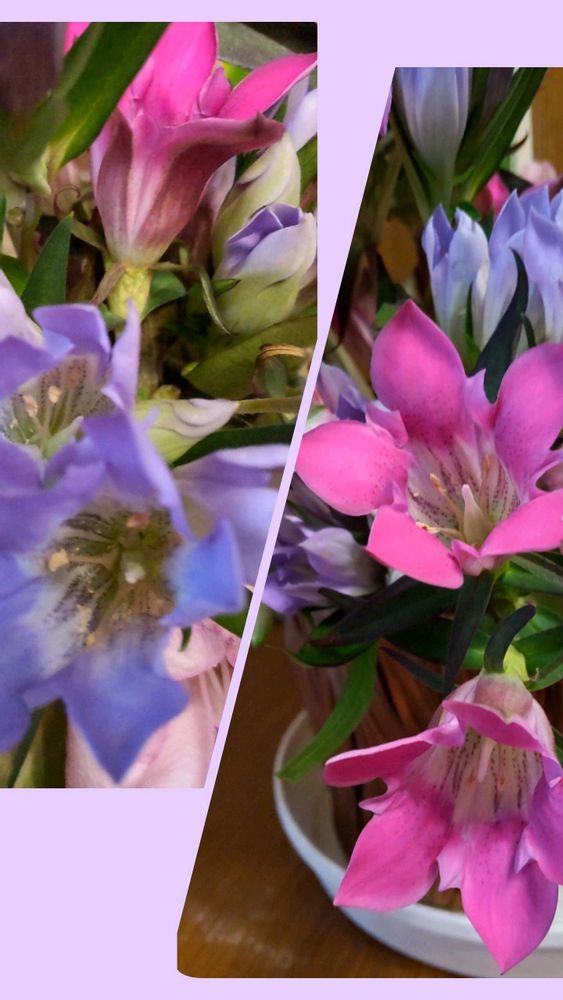 1週間前に投稿したお花を小さめにアレンジしました。リンドウが可愛い〜ですよね。
