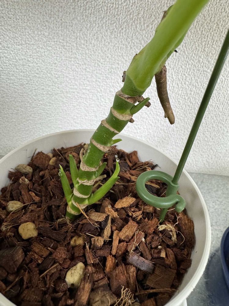 少しして根元のあたりから新芽かな、が出てきてお水を上げたらしっかりお水を吸ってくれているみたいで、お水を見せてくれた◎