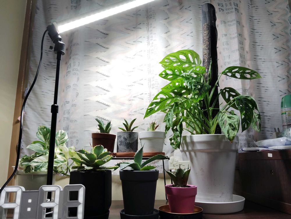 うちには育成ライトのパネルを取り付ける場所も無くとりあえず広範囲に当てられて置き場所をあまり取らないスタンドタイプの育成ライトを購入。←安物