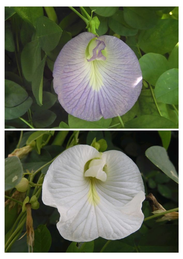 熱帯アジア原産。青い花をよく見かけますが、白や薄紫の花もあります。