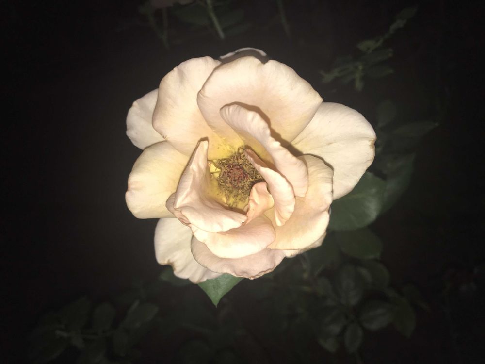 帰りにバラを見つけたものの、すでに夜で暗くてよく見れずで…