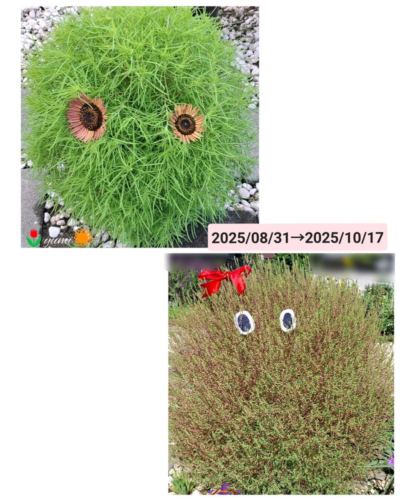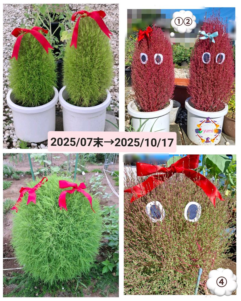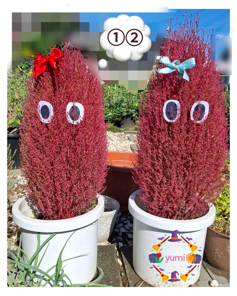コキア、色の変化だけでなく、オシャレも楽しめるんだね。