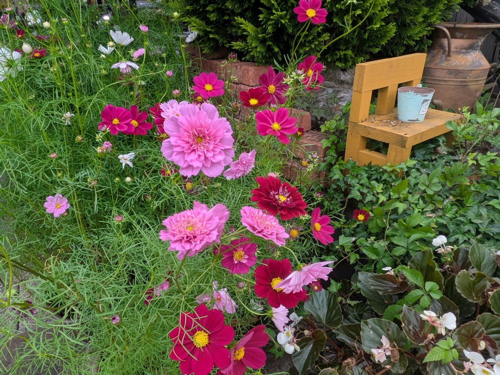 どうせ種蒔きするなら園芸店で見た事ないコスモスを…なんて欲張ってバラみたいな八重咲きの種を買いました😄