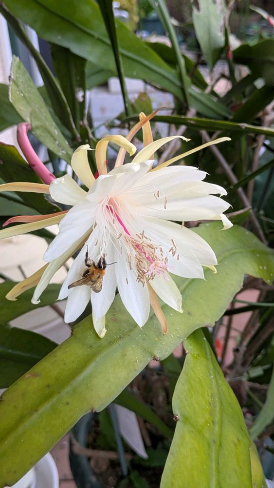 今朝見たら、蜂のお客様が来ていました🐝蜂さんも美人が好きなのね(*´艸`)
