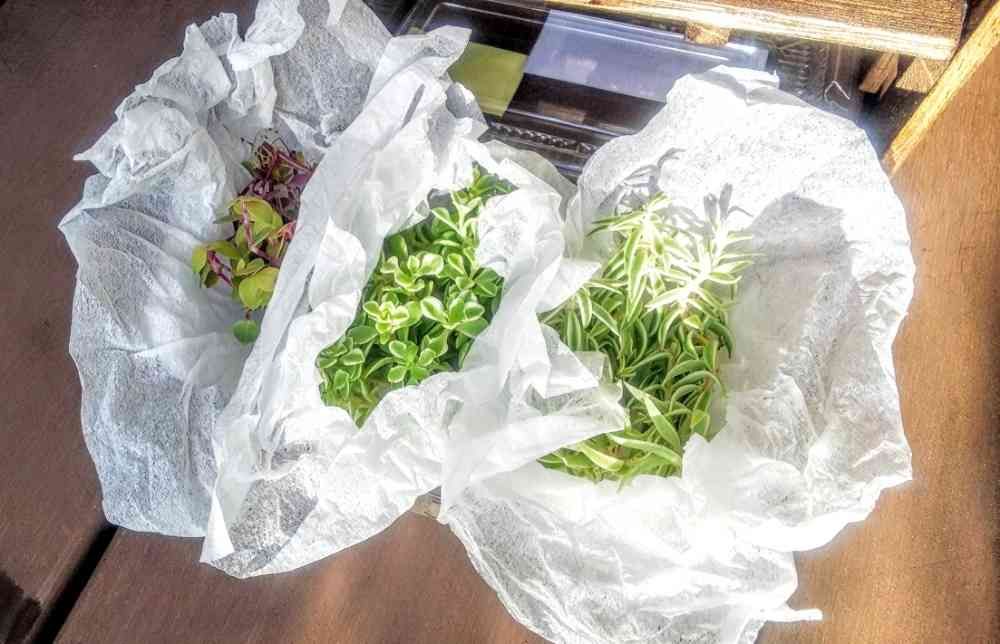 メルカリでお願いしてた斑入り丸葉万年草。オマケ付きで到着!早く乾け〜(*‘ω‘ *)