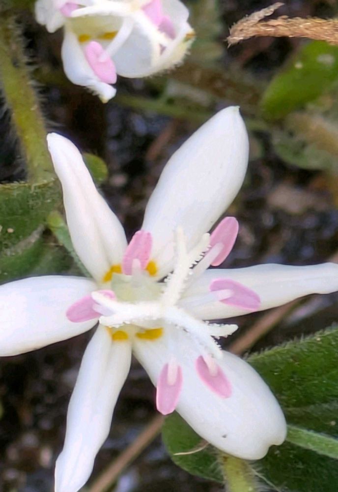 3枚目 野良の白いホトトギスは葯がピンク色だから、ルリシベホトトギスとか言うのかな🩷