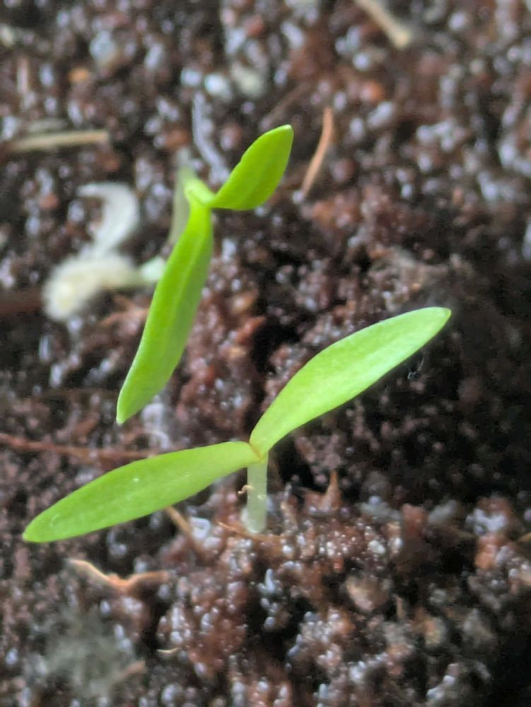ピンクタンポポ クレピスピンクの発芽 昨年蒔きそびれた種です。期限は今年10月でした。芽は今9つ出ました。