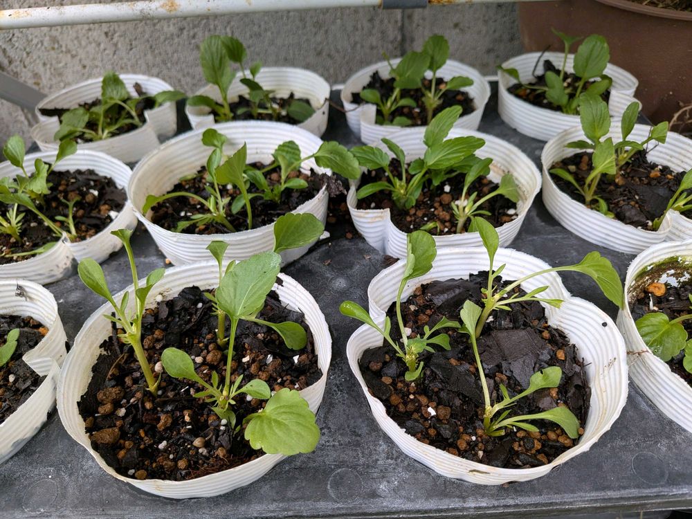 うちではこぼれ種の子が育ってきて5個ポット上げして育ててます。