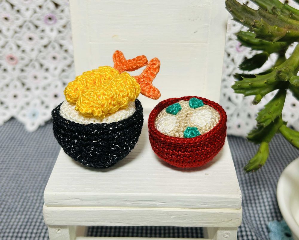 🧶大きなエビフライ2本の🍤丼とお豆腐、ネギのお味噌汁 美味しそう😋