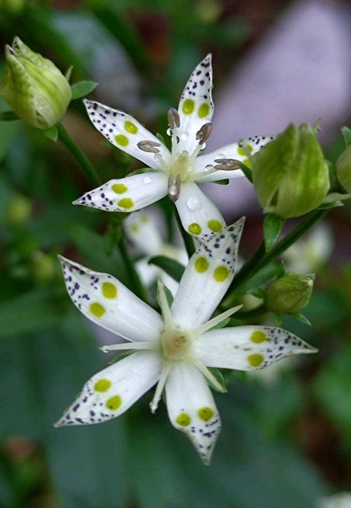 曙とは夜明けのことで、空にはまだ星がまたたいている。曙草の花弁にある黒紫色の斑点を夜明けの明星に見立てたのが名前の由来。