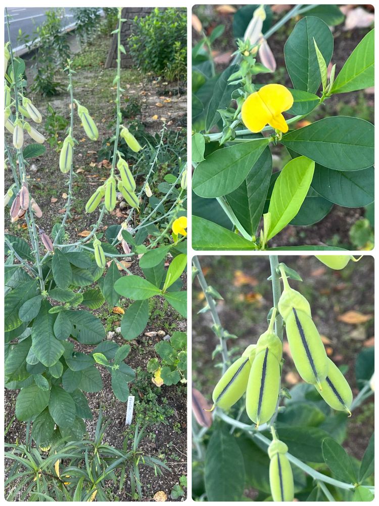 自宅から買い物に行く道に黄色の花と豆を見付けました(昨日撮影)🙌