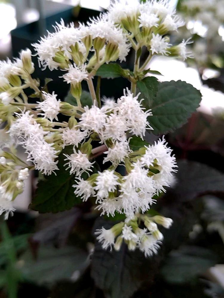 こんばんは🌛ユーパトリウムですか?珍しいお花ですね🤩アゲラタムに似てる!と思ったけど、拡大したら、星型でペンタスにも似てる👀✨調べたら、宿根草で長く楽しめるし、季節によって、葉っぱの色も変化するんですね❣️お花も葉っぱも楽しめるオシャレな子ですね🥰