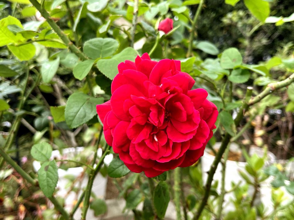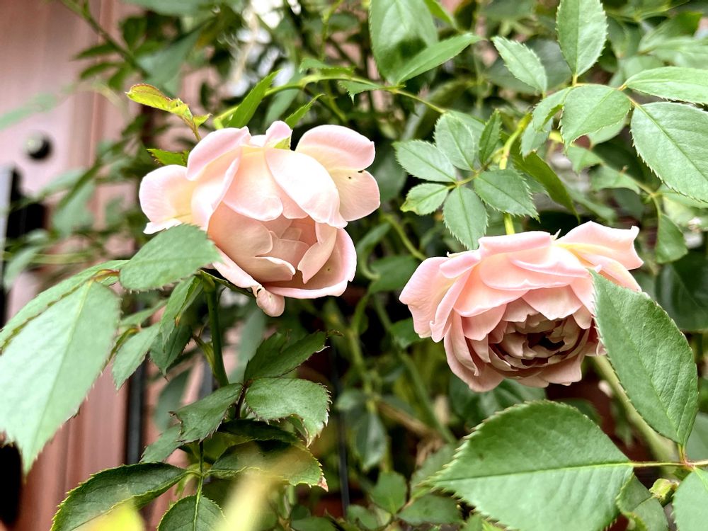 これから☔️が降り出しそうなので、咲き始めた薔薇をなるべく軒下に移動しました🌹🌹
