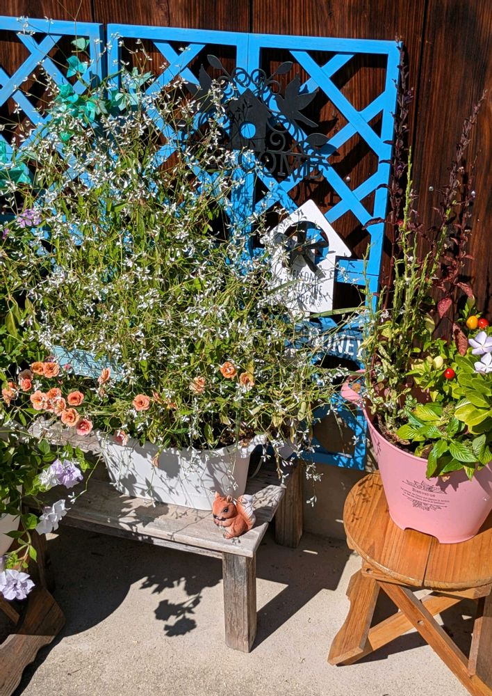 そしてママ・レードさん手作りの青のトレリスがいい差し色〜🩵